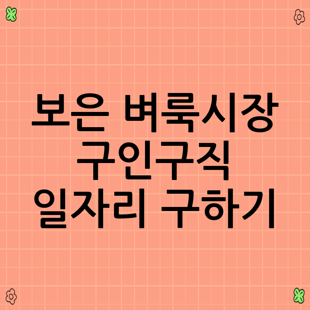 - 지역 기반 온라인 카페/밴드: 보은군 관련 지역 카페나 밴드에 가입하여 구인 정보를 얻거나, 직접 구직 글을 올려보세요. 예상치 못한 기회를 찾을 수 있으며, 지역민들과의 소통을 통해 유용한 정보를 얻을 수 있습니다.