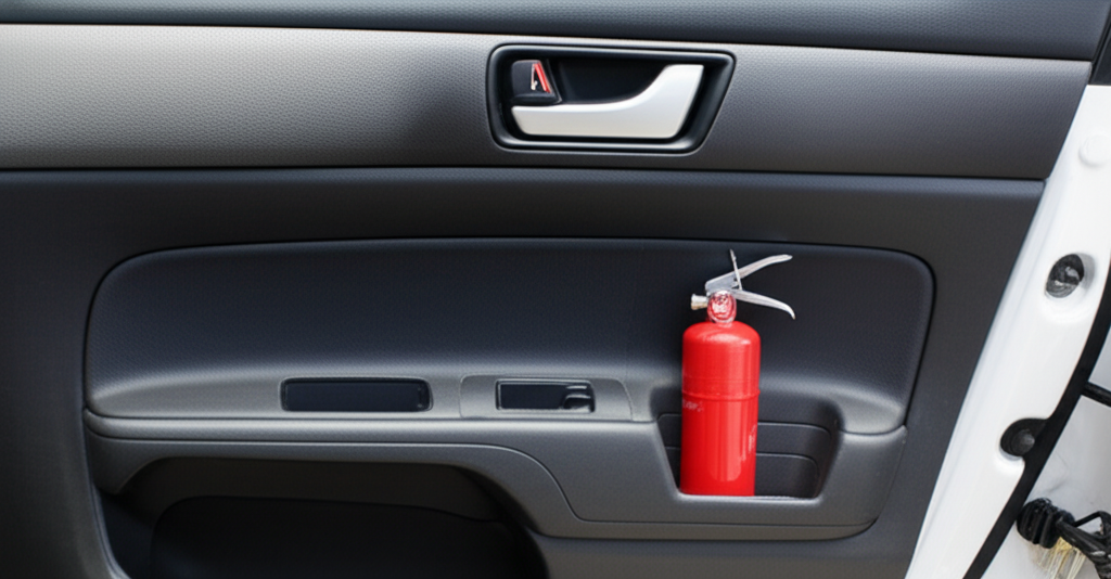 - 운전석 문 수납공간 또는 글로브 박스: 역시 접근성이 좋은 곳입니다. 다만, 주행 중 소화기가 굴러다니지 않도록 단단히 고정할 수 있는 공간이어야 합니다.
