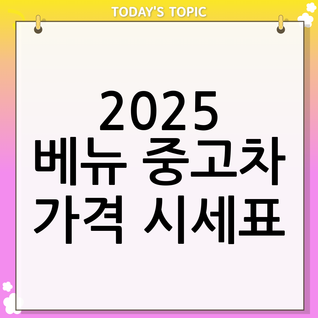 아래는 특정 조건을 포함한 2025 베뉴의 중고차 가격 시세표입니다.