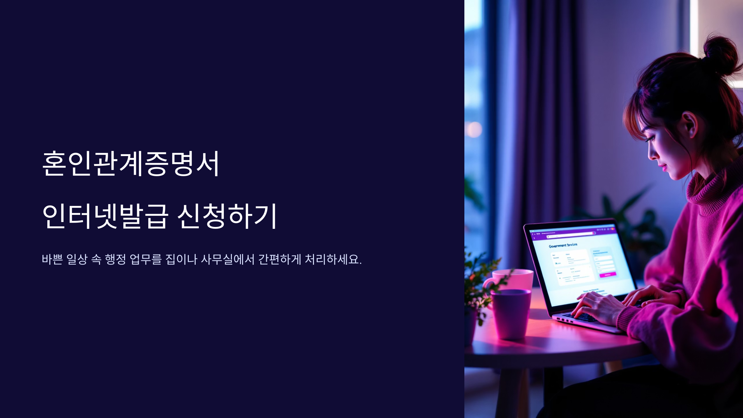 과거에는 주민센터를 방문해야만 발급받을 수 있었던 혼인관계증명서를 이제는 인터넷을 통해 쉽고 빠르게 신청할 수 있습니다. 시간 제약 없이 24시간 신청 가능하며, 집에서 편안하게 처리할 수 있다는 큰 장점이 있습니다.